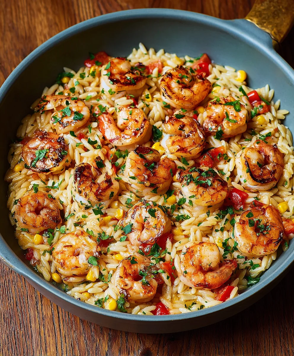 Lecker: Orzo mit Garnelen & Geröstetem Mais – Schnell!